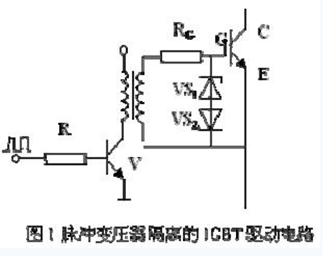 電路如圖1 所示,這種電路結構簡單,應用了廉價的脈沖變壓器實現IGBT 主電路與控制電路的隔離。其性能的好壞取決于脈沖變壓器的制作,應盡量減小脈沖變壓器的漏感抗,并采用高鐵氧體鐵心,最高工作頻率可達40KHz。