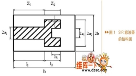 DC-SIR (Double Coaxial Stepped Impedance Resonators)濾波器的內(nèi)部諧振器由兩種或兩種以上不同特征阻抗的同軸傳輸線結(jié)合而成,并且在諧振桿的低阻抗部分開了一個(gè)空腔。與普通的濾波器相比它具有更小的體積。通過選擇較小的阻抗比RZ(不同特征阻抗的比值)可以無限地縮短DC-SIR諧振器的長度,減小RZ也可以使雜散諧振頻率遠(yuǎn)離基本諧振頻率。圖1為DC-SIR濾波器的單腔結(jié)構(gòu)圖。