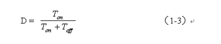 式中Ton為控制開關K接通的時間,T為控制開關K的工作周期。改變控制開關K接通時間Ton與關斷時間Toff的比例,就可以改變輸出電壓uo的平均值Ua 。一般人們都把 稱為占空比(Duty),用D來表示,即: