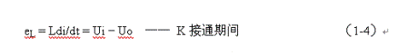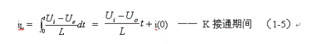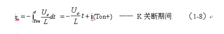 式中–Uo前的負號,表示K關斷期間電感產(chǎn)生電動勢的方向與K接通期間電感產(chǎn)生電動勢的方向正好相反。對(1-7)式進行積分得:
