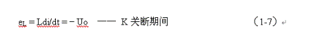 在Toff期間,控制開關K關斷,儲能電感L把磁能轉化成電流iL,通過整流二極管D繼續(xù)向負載R提供能量,在此期間儲能濾波電感L兩端的電壓eL為: