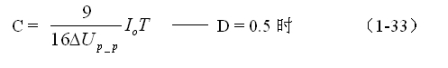 同理,(1-33)和(1-34)式的計算結果,只給出了計算反轉式串聯(lián)開關電源儲能濾波電容C的中間值,或平均值,對于極端情況可以在平均值的計算結果上再乘以一個大于1的系數(shù)。