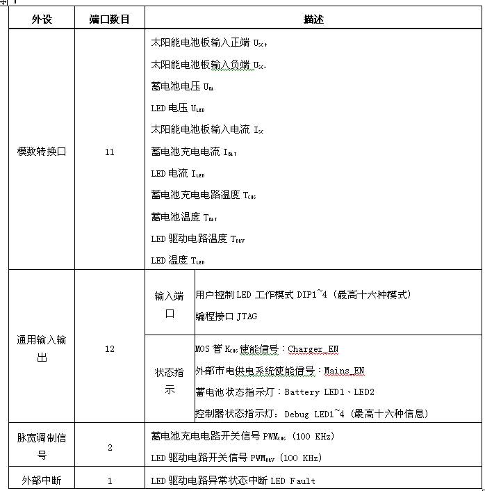 表1: MCU外設分配。