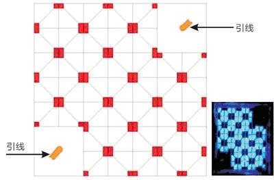 AC LED光源的重大技術(shù)突破是超細(xì)LED晶粒在封裝時(shí)的特殊排列組合技術(shù),同時(shí)利用LED PN結(jié)的二極管特性兼作整流,半導(dǎo)體制程在其中扮演著相當(dāng)重要的角色。AC LED通過(guò)半導(dǎo)體制程整合成一堆微小晶粒,采用交錯(cuò)的矩陣式排列工藝,并加入橋式電路至芯片設(shè)計(jì),使AC電流可雙向?qū)ǎ瑢?shí)現(xiàn)發(fā)光。晶粒的排列如圖2所示,左圖是AC LED晶粒采用交錯(cuò)的矩陣式排列示意圖,右小圖是實(shí)際AC LED晶粒排列照片,AC LED晶粒在接上交流后通體發(fā)光,因此只需要二根引線導(dǎo)入交流源即能發(fā)光工作。