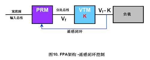 自適應閉環(圖9)。由VTM把訊號傳送給PRM,讓PRM調整分比母線。以補償VTM的輸出阻抗。自適應閉環只需要在VTM與PRM之間接上簡單、非隔離的反饋電路,它的穩壓精度便可達+/-1%。