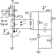 另外對于有使能腳的PWM控制器,如L6565等,用可控脈沖信號控制使能腳使控制芯片有效或失效,可以實現(xiàn)BurstMode,上述BurstSignal可由圖1中所示的遲滯比較器產(chǎn)生。