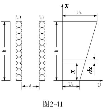 圖2-41是分析計算開關變壓器線圈之間分布電容的原理圖。