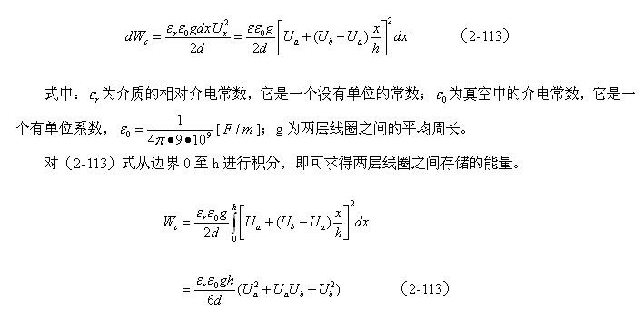 對于圖2-42-b,可求得變壓器初級或次級兩層線圈之間的分布電容為:
