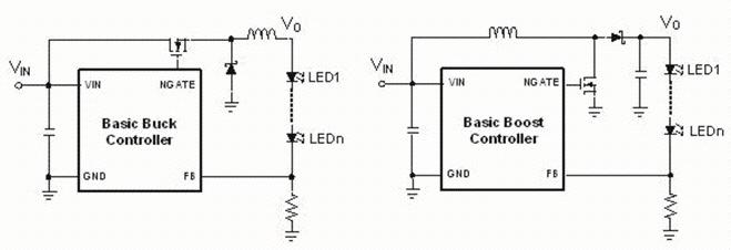 由于Boost和Buck-boost調(diào)節(jié)器的高度復(fù)雜性及其外圍電路、低效(特別是Buck-boost)和控制拓?fù)涞倪x擇不足,致使它們都不是轉(zhuǎn)換LED驅(qū)動的首選。但是它們都是LED越來越多的照明應(yīng)用必不可少的。某些系統(tǒng)結(jié)構(gòu)可以用buck或者甚至是線性以調(diào)節(jié)器為基礎(chǔ)的LED驅(qū)動來替代。比如類似于街燈的大型光源需要一百甚至更多的1W+LED。一般來說,針對通用照明的LED從低功耗走向高功耗,并且在其中間舞臺,比如汽車前燈和小型光部件,boost和buck-boost調(diào)節(jié)器代表了常電流驅(qū)動的最佳選擇。