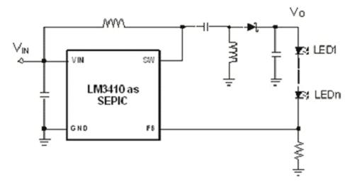 LED電流可以被立即切斷。另外,必須要特別考慮系統回應。這樣一個開路事實上是一個快速外部退荷暫態,它斷開了反饋環,引起了調節器輸出電壓的的上升。為了避免因為過壓失敗,我們需要輸出鉗制電路和/或誤差放大器。這種鉗制電路很難用外部電路實現,因此,串聯FET調光只能用專用Boost/Buck-Boost LED驅動IC來實現。