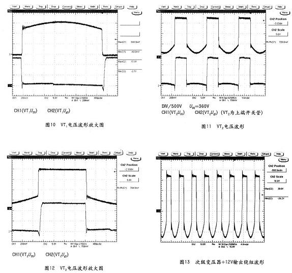 實(shí)際波形結(jié)果我們實(shí)際用一般雙晶體管正激的產(chǎn)品經(jīng)過改進(jìn),將其調(diào)整為上述的有源鉗位方式,其實(shí)際的雙晶體管工作波形如圖9~圖12所示。