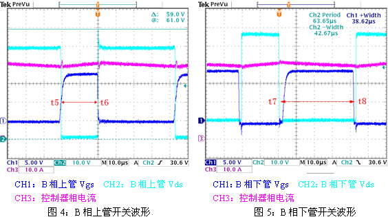 3.1.3 B相上管導通損耗(t5-t6),見圖4;