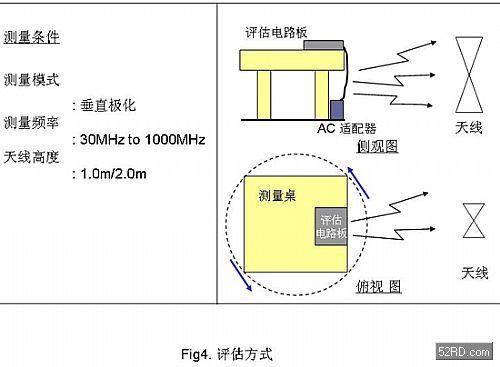 根據評估結果的測試數據,噪聲的發射范圍從幾十MHz到800MHz都有。因此,可以推斷噪聲是從DC/DC轉換器和內部數字處理電路傳向AC適配器,通過電源線發射出來的。