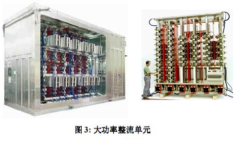在整流應(yīng)用中,由于沒有再生負載,額定電壓選擇依據(jù)整流器輸入線電壓。如果與3英寸或4英寸二極管或晶閘管配合使用,可以形成的整流器輸出為直流2100V,將可允許在一條生產(chǎn)線上有440只電解槽串聯(lián),這等效于每年39萬噸鋁的生產(chǎn)能力。