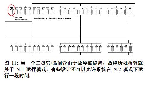 整流器中的半導體和快熔的配合需要仔細考慮。一個考慮周全的熔斷器保護方案基本不存在半導體爆炸的可能。與之相反,不當?shù)南到y(tǒng)設(shè)計將會導致燃弧和起火、損壞整個整流器單元、以及操作人員的人身傷害。按照N-1模式設(shè)計系統(tǒng)可以保護用戶免受生產(chǎn)線部分或全部停頓帶來的損失。因此,在大功率整流應(yīng)用中,都是基于N-1模式的連續(xù)滿載運行。在某些應(yīng)用中,客戶甚至要求按N-2-或更多來進行設(shè)計,這些都要加以考慮。如果整流器在N-x模式下運行了過長的時間,而整流器本不是按照N-x模式來設(shè)計的,那么結(jié)果就是故障熔斷器所在橋臂的所有其他熔斷器也受到了傷害。