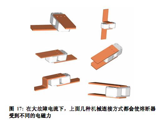 現(xiàn)代生產(chǎn)過程對整流器電流輸出能力要求越來越高,這意味著整流柜中的能量密度越來越大。將現(xiàn)代新型的大功率半導體與5號快熔搭配,可以減少整流器中元件的數(shù)目,每個元件承擔的電流也將會增加,故障電流水平也將增長,甚至可能達到接近300KA的水平。在這么大的故障電流下,由于電流通路的不同走向,熔斷器有可能要承受巨大的電磁力。