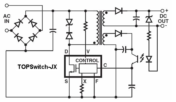 - TOPSwitch-JX系列集成了MOSFET、PWM控制器和其他保護和控制功能