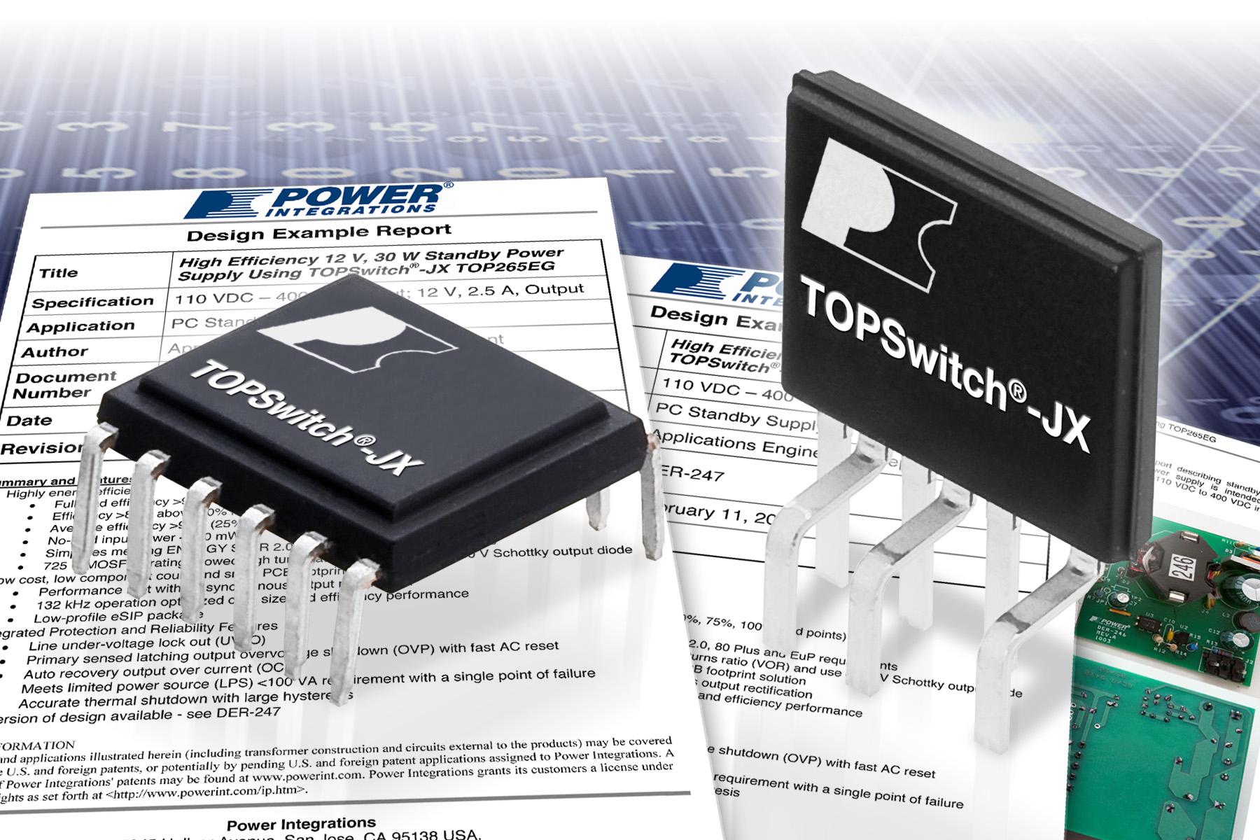 用于高能效電源轉(zhuǎn)換的高壓集成電路業(yè)界的領導者Power Integrations公司,今日宣布推出使用其新近發(fā)布的TOPSwitch-JX IC產(chǎn)品系列設計的兩款全新待機電源參考設計。TOPSwitch-JX器件采用多模式控制,不僅可降低電源待機功耗,還能在整個工作負載下實現(xiàn)最高效率。新的參考設計非常適合那些要求滿載效率達到90%以上,以便輕松滿足嚴格能效標準的應用,這些標準包括80 PLUS? Gold或Silver PC規(guī)范、EuP Lot 6待機標準以及美國加州新的電視機功耗要求。