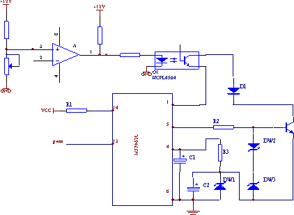 比較器A的第二腳接變壓器原邊電流轉(zhuǎn)換的電壓值,O1為快速光電耦合器HCPL4504,其輸出三極管與快恢復(fù)二極管相串聯(lián),當(dāng)變壓器原邊電流沒有超過設(shè)定的閾值時,無集中過流信號,此時光耦的輸入側(cè)二極管處于導(dǎo)通狀態(tài),在分散過流檢測通道中串入的光耦不會影響分散過流保護功能,當(dāng)變壓器原邊電流超過設(shè)定的閾值時,產(chǎn)生集中過流信號,此時光耦的輸入側(cè)二極管迅速關(guān)斷,快速光耦的輸出側(cè)三極管迅速關(guān)斷,M57962的1腳將懸空,此時IGBT如果仍處于導(dǎo)通狀態(tài),則驅(qū)動模塊內(nèi)部的過流保護電路就會動作,對IGBT實施軟關(guān)斷保護。這樣,不論分散過流保護,還是集中過流保護,都能對IGBT實施軟關(guān)斷保護,防止過大的關(guān)斷電壓對IGBT造成損壞。