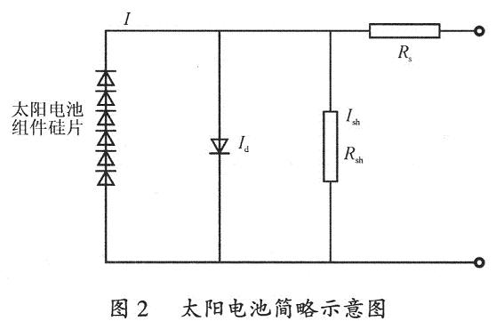 由于一個(gè)太陽(yáng)電池組件一般包含36或72塊太陽(yáng)電池硅片,不同的硅片的暗電流是不一樣的,由圖2所示太陽(yáng)電池簡(jiǎn)略示意圖可分析如下。