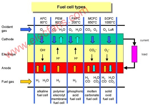 燃料電池是一種設備,它能利用氫這種地球上最豐富的元素將化學能轉(zhuǎn)化為電能。PEM燃料電池(最常用的一種燃料電池)中,在多孔陽極(porousanode)與陰極之間有一層電解膜。這層電解膜由一種允許質(zhì)子通過但阻擋電子通過的特殊材料制成。PEM電池工作時,讓氫氣和氧氣分別通過陽極與陰極,從而產(chǎn)生電流。陽極發(fā)生接觸反應將氫氣分解為質(zhì)子,這些質(zhì)子通過PEM到達陰極。電子不能穿透PEM,所以會沿著其周圍的一條電路到達陰極,這條電路中電子的移動就形成了電流。