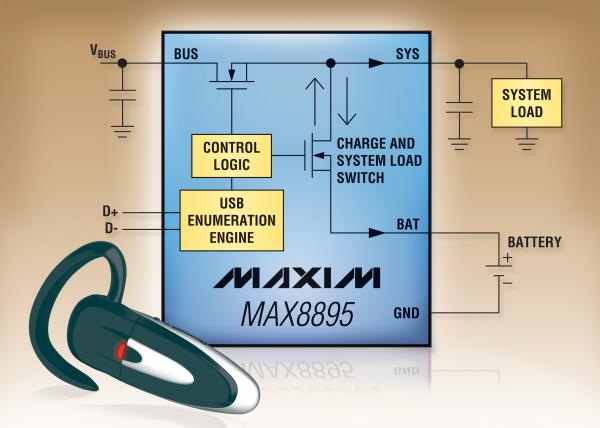 Maxim推出線性電池充電器MAX8895,器件適用于符合USB電池充電規(guī)范(1.1版本)的Bluetooth®耳機和便攜設備。MAX8895獨特地集成了自動適配器檢測功能,可分辨USB設備、USB充電器和專用充電器。器件還具有USB枚舉功能,可自動與USB主機進行交互,無需處理器干預即可優(yōu)化充電電流。該功能無需使用單獨的微控制器和系統軟件,因而可提供業(yè)內僅有的單機運行充電方案。