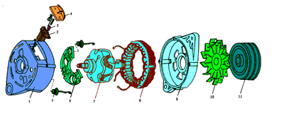 交流發(fā)電機(jī)一般由轉(zhuǎn)子、定子、整流器、端蓋四部分組成。