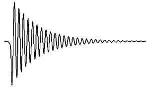 當被磁化的鐵粉通過衰減的正弦波磁場時,能夠達到有效的退磁效果。退磁效果與正弦波的頻率有關(guān),當頻率大于800Hz時,退磁效果明顯變好。退磁效果還與磁場強度有關(guān),通常磁場強度大于矯頑磁力的5倍即可。為了達到上述性能指標,目前普遍采用的電路形式如圖1所示,工作原理如下:當可控硅SCR2導(dǎo)通時,電感L1、電容C1構(gòu)成一個并聯(lián)諧振回路,如果初始狀態(tài)電容C1兩端有電壓,則震蕩電路會產(chǎn)生衰減的正弦波震蕩,波形如圖2所示。這樣就在線圈內(nèi)形成了與之同樣的磁場。該正弦波應(yīng)該從最高的幅度逐漸衰減到0,才能保證更好的脫磁效果。
