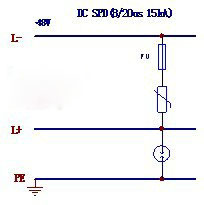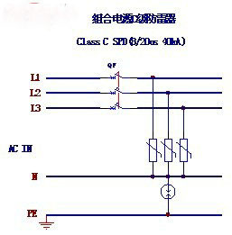 對于站內組合電源系統的防雷,其防雷電路比較簡單,也比較成熟,根據‘郵標’,在組合電源系統交流側采用通流容量為40kA(8/20μS波形)的 “3+1”方式的交流C級防雷器,在組合電源的直流側采用通流容量為15kA(8/20μS波形)的“1+1”方式的直流防雷器即可。