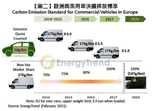 此次的決議也將明確的揭示歐洲車輛排放標(biāo)準(zhǔn)在商用車輛趨嚴(yán)的決心,也將加速新能源車相關(guān)零組件的結(jié)盟布局。在此氛圍中,各家車廠勢必被迫在零組件供應(yīng)中,涵蓋鋰電池的采用。