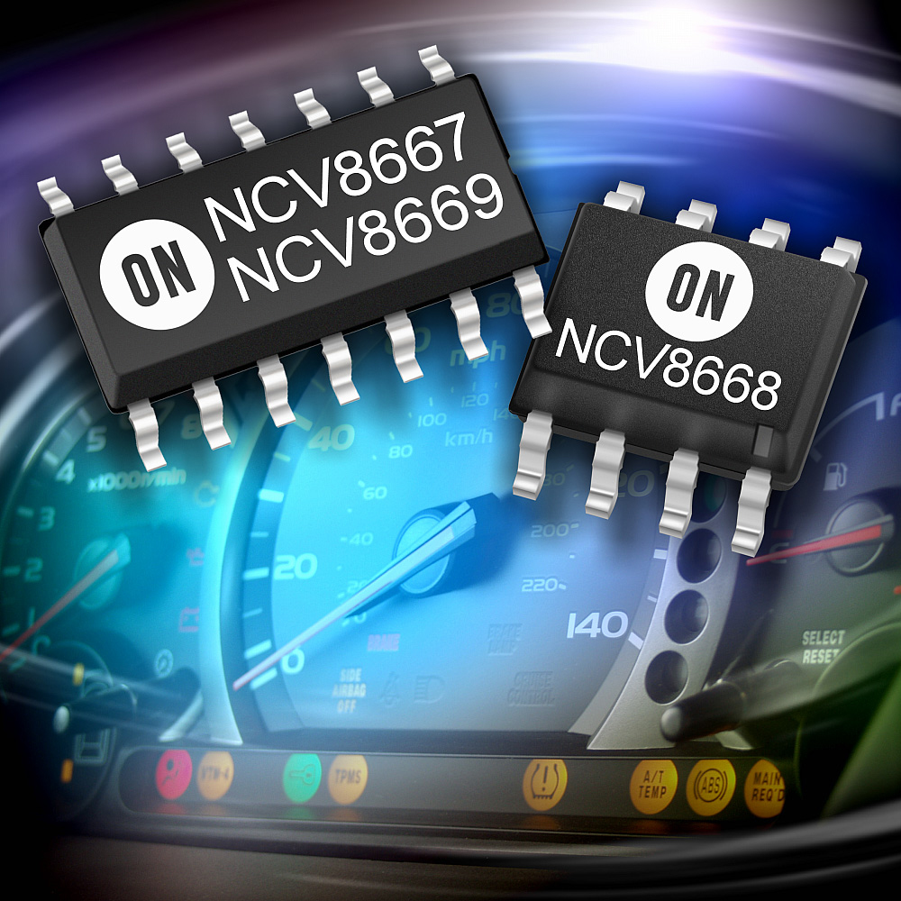 這5款新器件均通過AEC Q100認證及生產器件批準程序(PPAP)。NCV8768及NCV8769采用無鉛、符合RoHS指令的SOIC-14封裝,每2,500片批量的單價介于1.16美元至1.32美元之間。NCV8667、NCV8668和NCV8669采用無鉛、符合RoHS指令的SOIC-8及SOIC-14封裝,每2,500片批量的單價介于0.82美元至1.20美元之間。