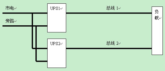 這里把兩組獨(dú)立市電都供給兩套UPS系統(tǒng),然后每一套UPS系統(tǒng)作為一條總線來使用,可以充分發(fā)揮市電雙總線,UPS內(nèi)部雙總線以及負(fù)載雙總線高可用性的優(yōu)勢(shì)。