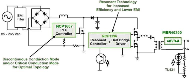在這類要求超高能效的更大功率LED區(qū)域照明應(yīng)用中,可以結(jié)合采用安森美半導(dǎo)體的NCP1607 PFC控制器和NCP1397雙電感加單電容(LLC)半橋諧振控制器,用于功率在50到300 W范圍的高能效LED街道照明應(yīng)用。NCP1397是最新高性能諧振模式LLC控制器,集成了600 V高壓浮動驅(qū)動器,支持50到500 kHz的高頻工作,內(nèi)置高端和低端驅(qū)動器,支持可調(diào)節(jié)及精確的最低頻率,提供極高能效,并具備多種故障保護特性。