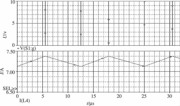圖5 開關(guān)管S1的驅(qū)動波形及升壓電感中的電流波形