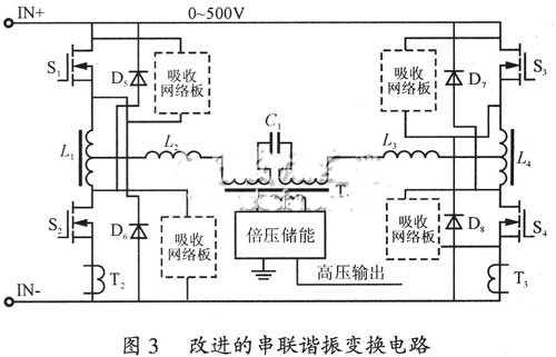 改進的串聯諧振變換電路具有電流、電壓限制的雙斜率輸出特性,電感L2、L3是諧振電感。C1為諧振電容。