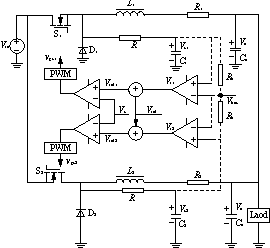 在大功率DC/DC開關(guān)電源中,為了獲得更大的功率,特別是為了得到大電流時(shí),經(jīng)常采用N個(gè)單元并聯(lián)的方法。多個(gè)單元并聯(lián)具有高可靠性,并能實(shí)現(xiàn)電路模塊標(biāo)準(zhǔn)化等優(yōu)點(diǎn)。然而在并聯(lián)中遇到的主要問(wèn)題就是電流不均,特別在加重負(fù)載時(shí),會(huì)引起較為嚴(yán)重的后果。普通的均流方法是采取獨(dú)立的PWM控制器的各個(gè)模塊,通過(guò)電流采樣反饋到PWM控制器的引腳FB或者引腳COMP,即反饋運(yùn)放的輸入或者輸出腳來(lái)凋節(jié)輸出電壓,從而達(dá)到均流的目的。顯然,電流采樣是一個(gè)關(guān)鍵問(wèn)題:用電阻采樣,損耗比較大,電流放大后畸變比較大;用電流傳感器成本高;用電流互感器采樣不是很方便,同時(shí)會(huì)使電流失真。本文提出了一種新型的、方便的、無(wú)損的電流采樣方法,并在這種電流檢測(cè)方法的基礎(chǔ)上實(shí)現(xiàn)了并聯(lián)系統(tǒng)的均流。