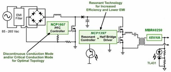 圖7 基于NCP1607和NCP1397的街道照明高能效LED電源方案