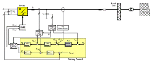 在ECS驅動饋電時,ECS決定了向電網傳輸的功率。如今,單臺RESs逆變器典型地就在這種饋電方式下運行,并向電網注入全部可提供的功率。在電網驅動饋電時,不再是ECS,而是電網決定功率的傳輸。典型的,大多數常規大型電廠運行在這種方式下,同樣,這種方式潛在的適合DERs和RESs系統,或者至少適合混合式電力系統。在ECS驅動饋電的情況下,逆變器控制方式被稱作電網平行方式。第二種情況可以被兩種不同的逆變器控制方式實現,分別是電網形成方式和電網支持方式。電網形成方式中逆變器的作用是建立和維持電網狀態變量。電網支持方式中逆變器被用于平衡功率。它可以傳輸預先設定數量的功率,這個數量可以根據電力系統的需要或者高級控制運行得到的參考值進行調整。應用這個控制方式的逆變器例子如圖3至圖5的左側所示。此外,這些基本有功功率調控器潛在的對二次電網控制的相互聯系可以被類似的闡釋。