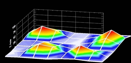 利用單層膜同步執行雙觸點檢測也是可行的,但若采用能夠同時解決多觸點事件的雙層技術,性能便會好得多。如圖7顯示在一個實驗室測試模型中使用者用三根指頭和大拇指時,電場的三維測量結果。