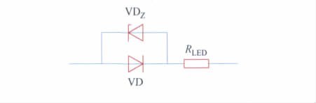 單個LED 仿真模型如圖4 所示,其中VD 為理想二極管,VDZ為理想單向擊穿二極管,RLED為LED等效串聯阻抗。仿真中設定單向擊穿二極管VDZ兩端電壓為: UD = 3. 0 V,設定等效串聯阻抗為: RLED = 0. 35 Ω。