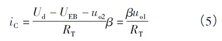 式中,UDZ為二極管壓降,其值等于PNP 晶體管VT 的射極E 與基極B 之間的壓降。電路選擇參數使uo1 = 0 時晶體管VT 處于微導通狀態,iC≈0,晶體管VT 的補償電流為: