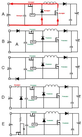 四開關非反相降壓-升壓有兩種操作模式,即降壓模式和降壓-升壓模式。在降壓模式下,轉換器產生輸入電壓脈沖,它經過LC濾波來產生一個較低的直流輸出電壓。輸出電壓可以通過修改相對于開關周期或開關頻率的導通時間來改變。