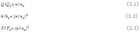 由流體力學可知,風量Q與轉速一次方成正比,壓力h與轉速的平方成正比;
