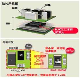 日本知名半導體制造商羅姆株式會社日前開發出集電容和電感等電源所需的零部件于一體的超小型電源模塊“BZ6A系列”。作為插件產品,實現了業內最小尺寸(2.3mm x 2.9mmx 1mm),為日益小型化的移動設備的高密度封裝作出了巨大貢獻。本產品計劃在羅姆株式會社的總部(京都)生產,并于10月份開始提供樣品,12月份起以月產50萬個的規模投入量產。