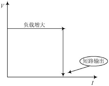 (3) 短路保護。整流模塊的輸出特性如圖5 所示,輸出短路時模塊在瞬間把輸出電壓拉低到零, 限制短路電流在限流點之下, 此時模塊輸出功率很小, 以達到保護模塊的目的, 這樣模塊長期可以長期工作在短路狀態而不至于損壞, 同時當故障排除后模塊可以自動恢復工作。