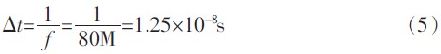 為依據國標QBT2443-1999 的規定計算。規定一級鋼卷尺自零點端起到任意線紋的示值誤差限為:Δ=(0.1+0.1L)mm,L 單位為m。若測試距離取0.3m,Δs 取0.03mm,待測運動物體速度為300m/s,那么將數據代入式(4)得到系統測速的最大相對誤差為: