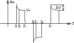 2)t2-t3時段 uAB="Uo",D12反偏截止。D1與D4導通,忽略D1與D4上的壓降,UEF=Uo。以E為電壓參考點,UF比UE電位低Uo,記作-Uo;由于UC=UEG=Uo+ΔUo,則UG比UE低Uo+ΔU,記作-(Uo+ΔU);這樣UFG=UF-UG=ΔU。