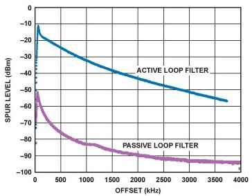 電荷泵將鑒相器誤差電壓轉(zhuǎn)換為電流脈沖,并通過(guò)PLL環(huán)路濾波器進(jìn)行積分和平滑處理。電荷泵通常可在最多低于其電源電壓(VP)0.5 V的電壓下工作。例如,如果最大電荷泵電源為5.5 V,那么電荷泵只能在最高5 V輸出電壓下工作。如果VCO需要更高的調(diào)諧電壓,則通常需要有源濾波器。有關(guān)實(shí)際PLL的有用信息和參考設(shè)計(jì),請(qǐng)參見(jiàn)電路筆記CN-0174,5,處理高壓的方式請(qǐng)參見(jiàn)利用高壓VCO設(shè)計(jì)高性能鎖相環(huán),"6該文章發(fā)表于模擬對(duì)話(huà)第43卷第4期(2009)。有源濾波器的替代方案是使用PLL和針對(duì)更高電壓設(shè)計(jì)的電荷泵,例如ADF4150HV ADF4150HV可使用高達(dá)30 V的電荷泵電壓工作,從而在許多情況中省去了有源濾波器。