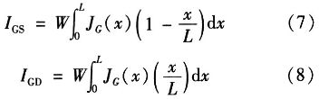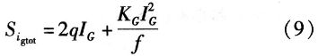 其中,JG是柵極電流密度,L是溝道長度,W是溝道寬度,x是沿溝道的位置(源極處x=0,漏極處x=L),IGS和IGD是柵極電流的柵/源和柵/漏分量。通過線性化柵電流密度與位置的關(guān)系,簡化這些等價噪聲電流分析表達(dá)式,所得的總柵極電流噪聲表達(dá)式為