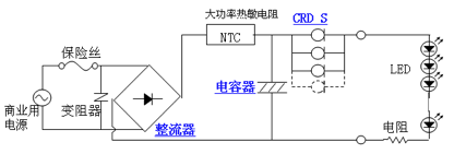 采用恒流二極管作為LED的恒流驅動具有結構簡單,成本低廉的優點。尤其適合于小功率市電LED燈具,如球泡燈和日光燈和吸頂燈。但是由于受到功耗的限制,它只能用于高壓小電流的情況。負載只能是多個小功率LED的串聯或是采用集成的“高壓LED”。而且,如果直接采用交流整流,電容濾波的方案,會有功率因素不高的缺點,而必須采用無源功率因素補償的方案。這些都是在使用時需要考慮的。